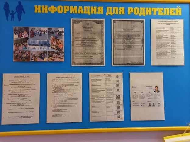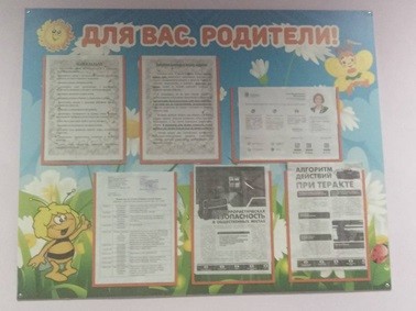 Для получения информации о жизни в детском саду имеются информационно-просветительские стенды для родителей.